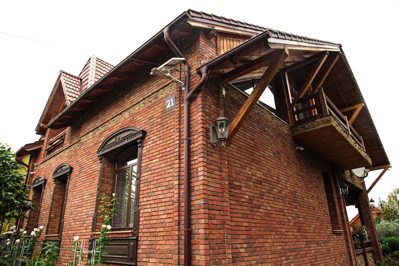 Дубовий зрощений дерев’яний брус, система “Passive-92”, лакофарбове покриття Adler, колір “Smotruch 1898”, алюмінієва накладка системи Gemini Retro, колір Тік, склопакети товщиною 48мм., мультифункційні, гартовані