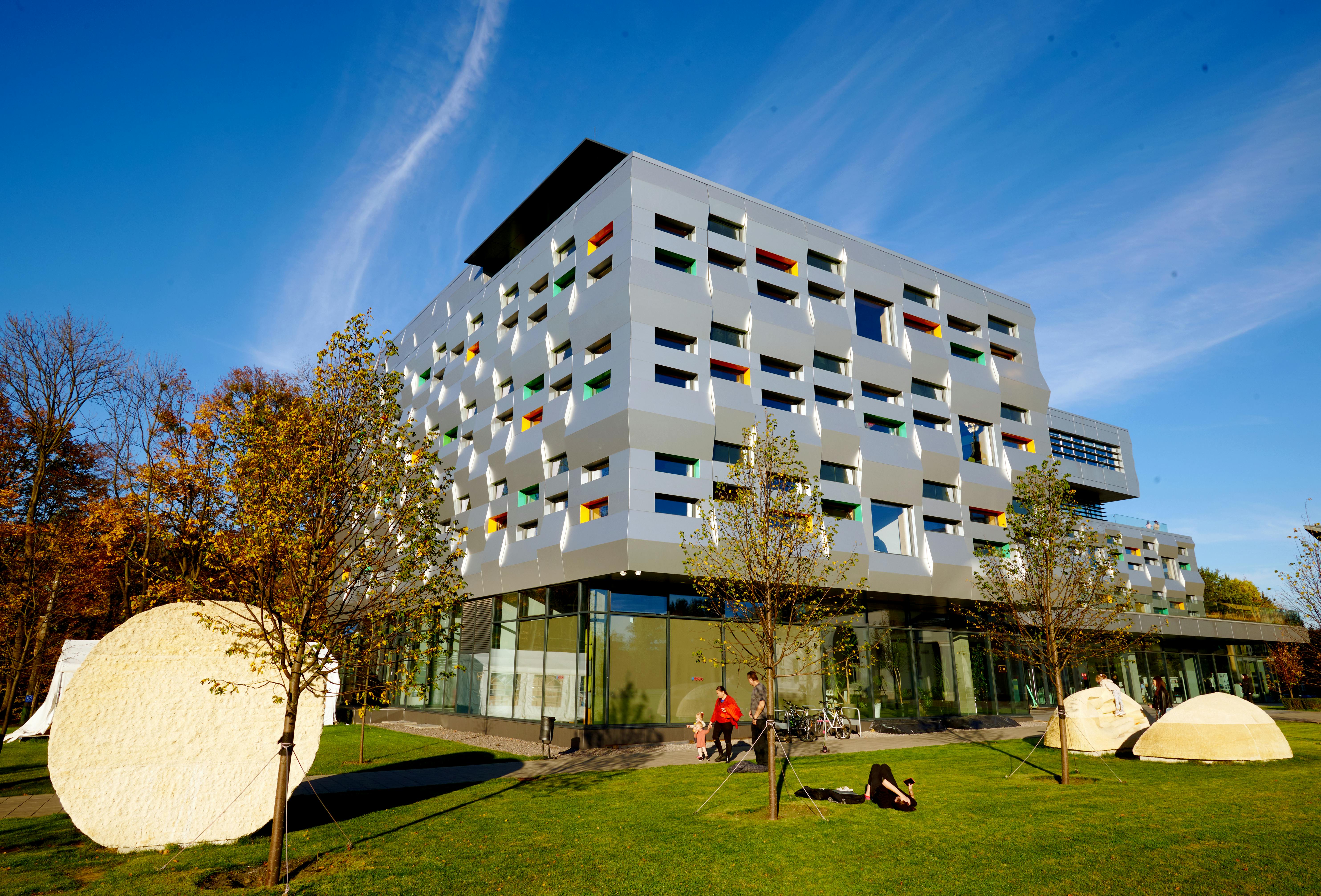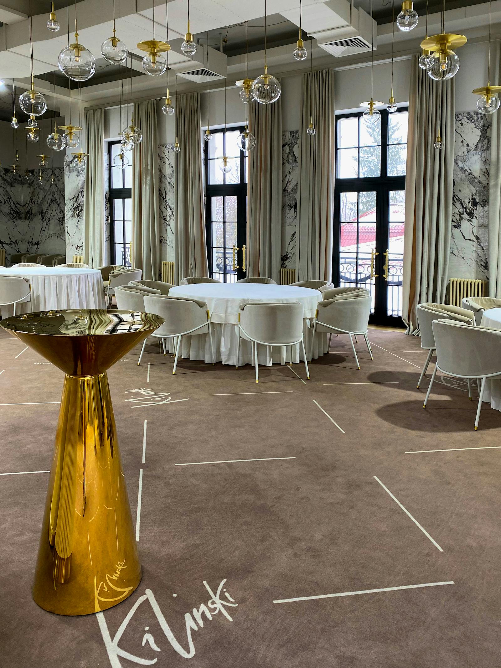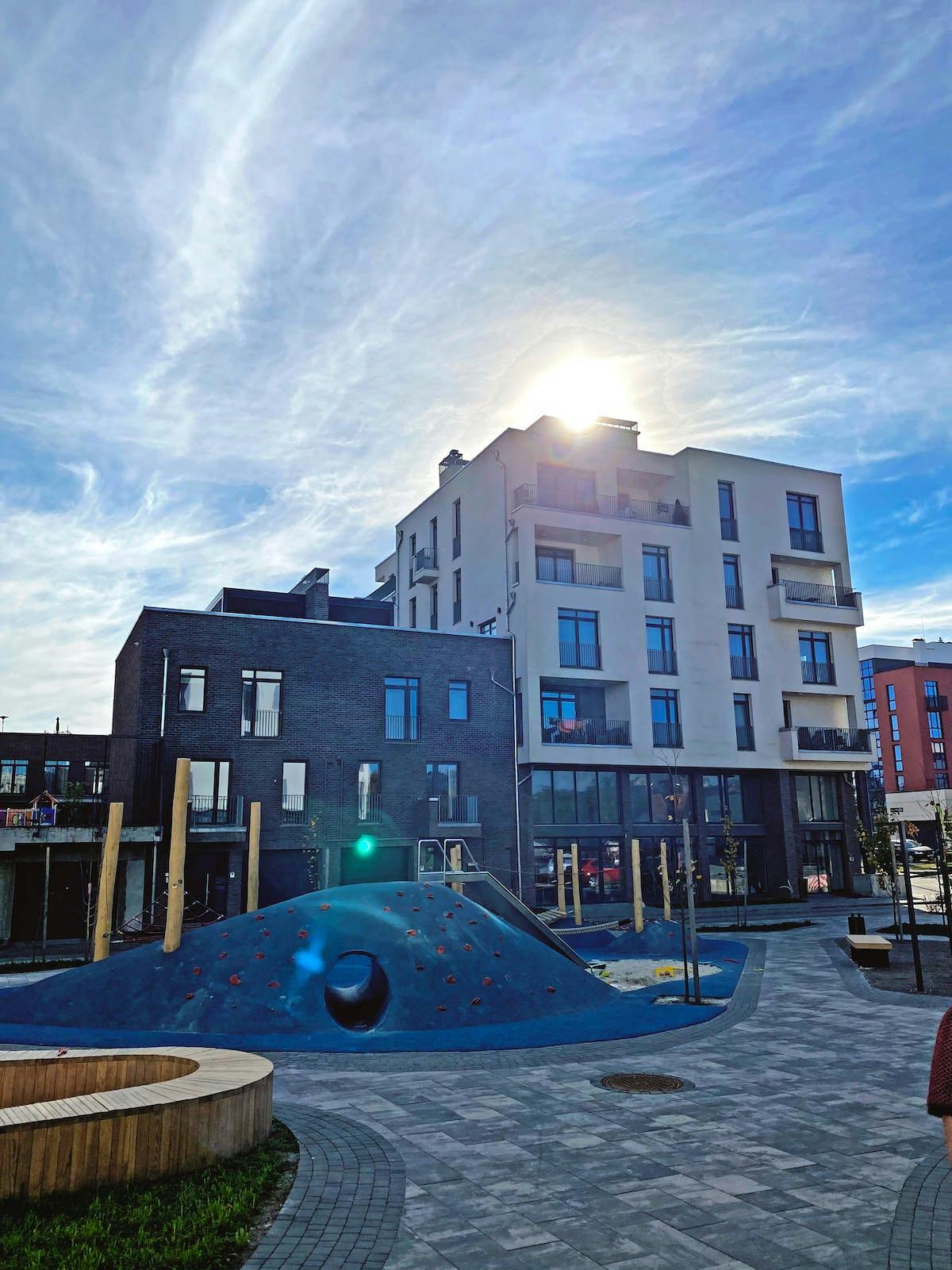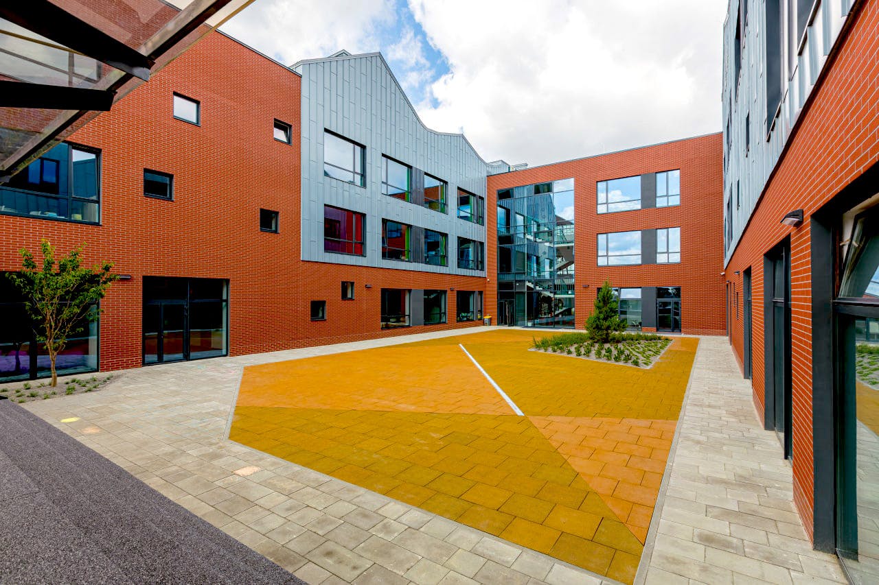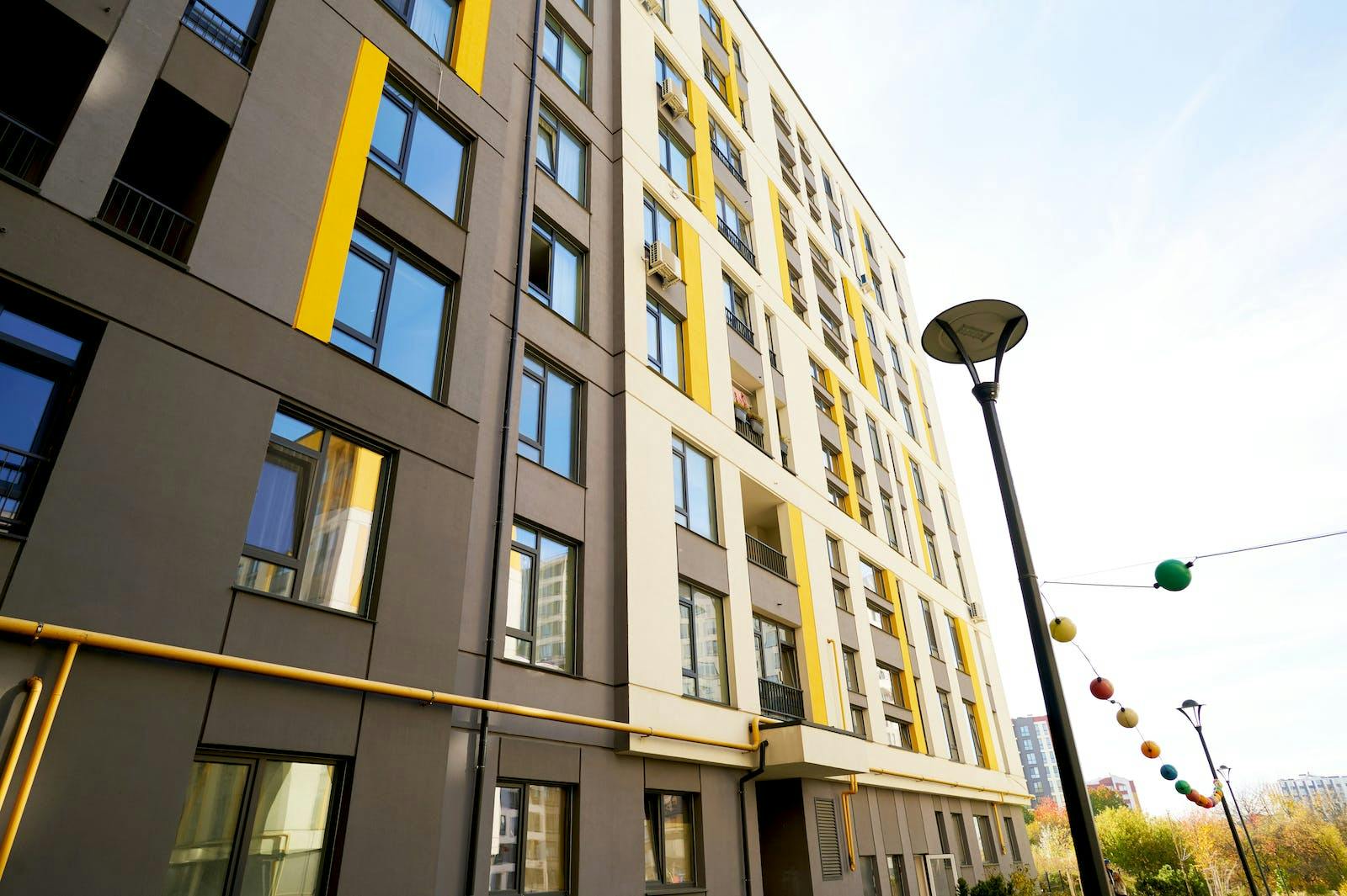 Алюмінієві фасади виконанні в профільній системі Reynaers CW- 50 HI, вікна - Reynaers Masterline 8 HІ з прихованими петлями. Особливістю архітектури проєкту є радіусні вікна та радіусні світлопрозорі фасади на кутах будівлі з гнутими склопакетами