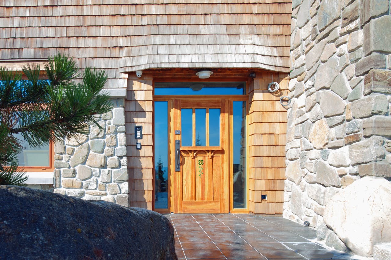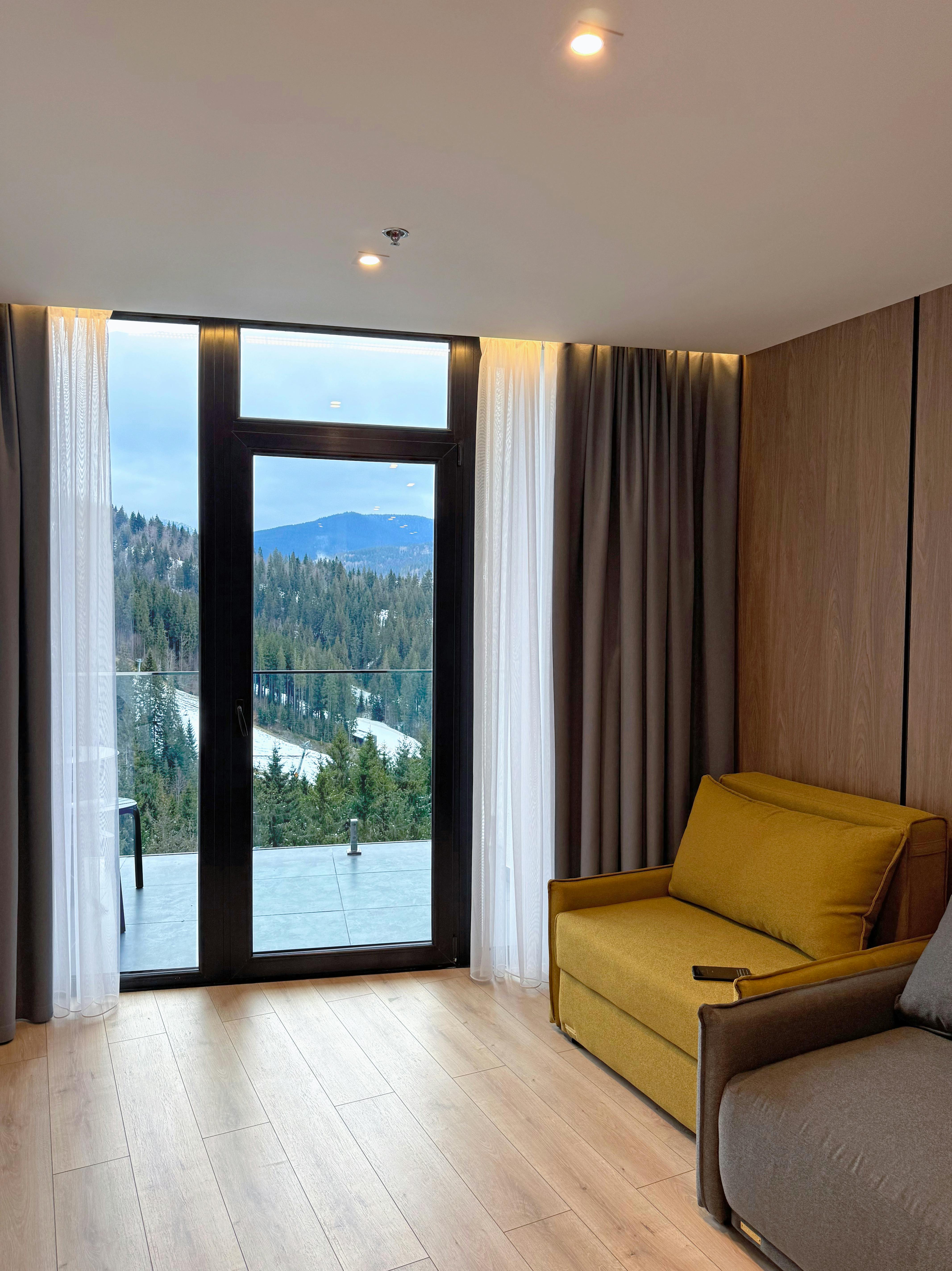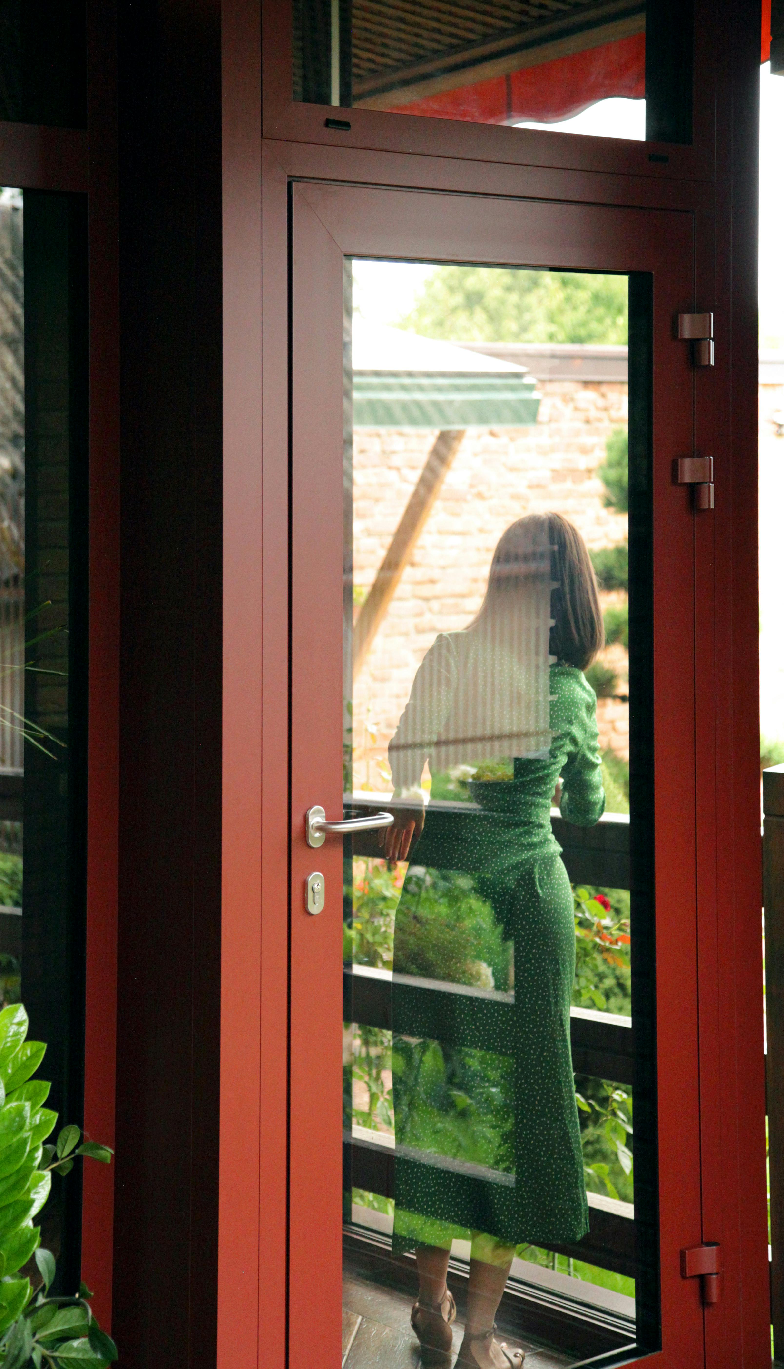 Алюмінієва профільна система Reynaers MasterLine 8 HI разом із розсувною системою CP 155-LS. Також встановлені вікна та двері з соснового дерев’яного бруса, система “Термоплюс-78”